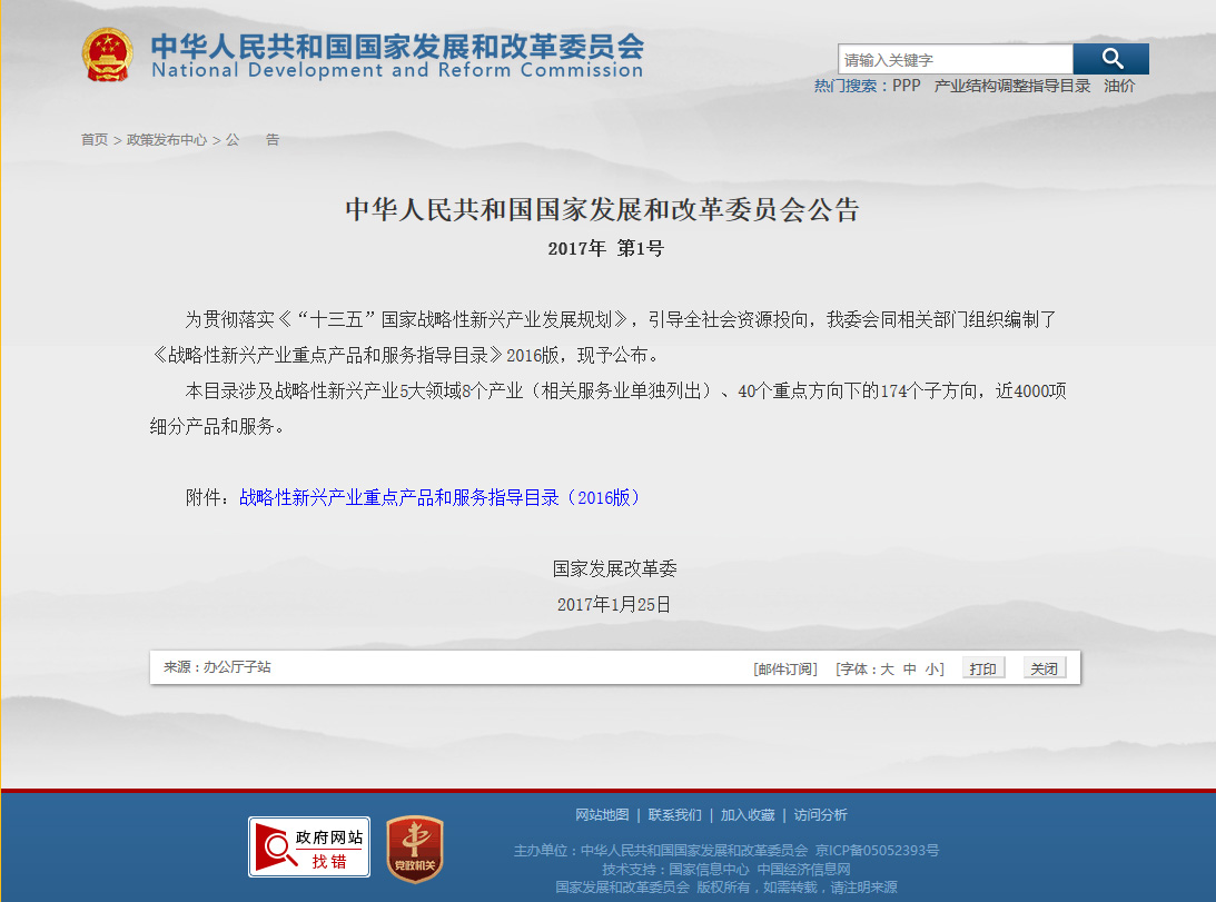 戰(zhàn)略性新興產(chǎn)業(yè)重點產(chǎn)品和服務(wù)指導(dǎo)目錄(2016版)(公告2017年第1號)