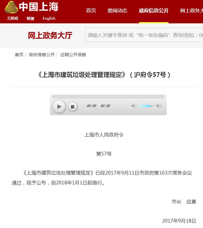 《上海市建筑垃圾處理管理規(guī)定》已經(jīng)2017年9月11日市政府第163次常務會議通過,現(xiàn)予公布,自2018年1月1日起施行。 來源:中國上海 官方網(wǎng)站上海市建筑垃圾處理管理規(guī)定(2017年9月18日上海市人民政府令第57號公布)第一章 總 則 第一條(目的和依據(jù)) 為了加強本市建筑垃圾的管理,促進源頭...