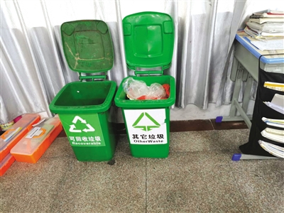 日前,海口市政府常務會議審議并原則通過《??谑猩罾诸惡蜏p量兩年行動方案(2020-2021)》,明確自8月1日起,對學校實行強制垃圾分類。為了解到??谑懈髦行W校垃圾分類前期準備工作,7月20日,記者進行走訪了??趲准覍W校,了解到各校正積極探索垃圾分類管理模式。①府城中學每間教室配備分類垃圾桶...