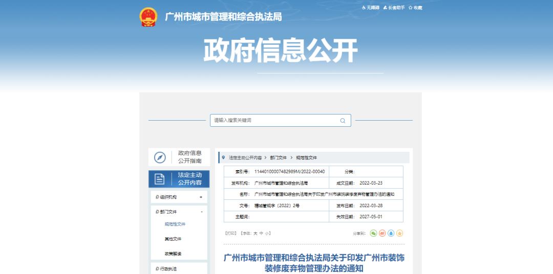 為推動裝飾裝修廢棄物規(guī)范化處置,維護城市管理秩序和市容環(huán)境衛(wèi)生,促進裝飾裝修廢棄物綜合利用,2022年3月28日,廣州市城市管理和綜合執(zhí)法局發(fā)布了《廣州市裝飾裝修廢棄物管理辦法》。 《辦法》適用于居民住宅裝飾裝修工程以及投資額不超過100萬元(含100萬元)或者建筑面積不超過500平方米(含500平...