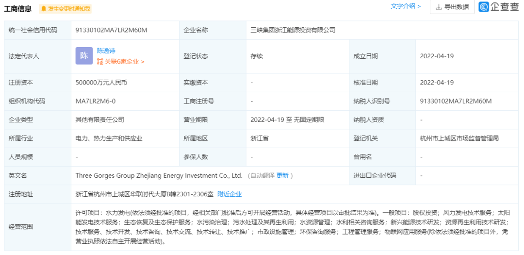 4月19日,三峽集團浙江能源投資有限公司成立,注冊資本為500000萬元人民幣,所屬行業(yè)為電力、熱力生產(chǎn)和供應業(yè)。 據(jù)中國固廢網(wǎng)獲悉,3月31日,三峽能源(600905.SH)公布,為了拓展在浙江新能源業(yè)務,加快資源儲備和規(guī)模突破,公司擬與控股股東中國長江三峽集團有限公司(簡稱三峽集團)及其全資子公...