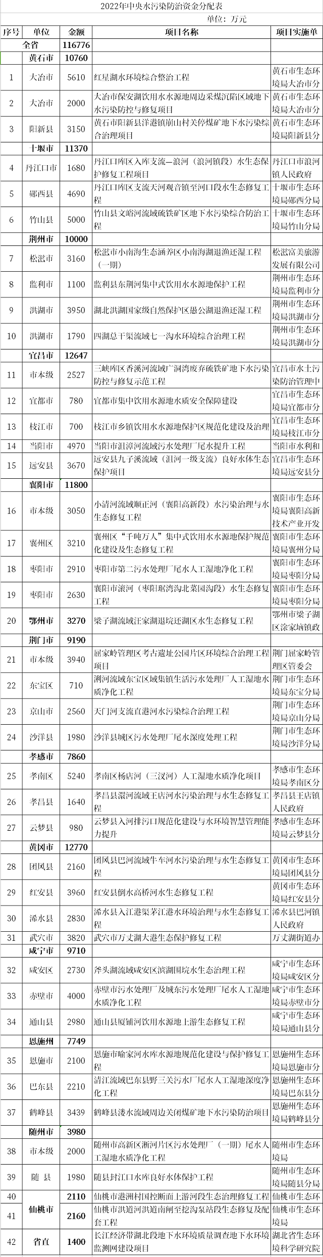 2022年3月30日,湖北省財政廳發(fā)布“關于下達達2022年中央水污染防治資金的通知”,總計116776萬元,42個重點工程項目。 詳情如下: 原文如下: 省財政廳關于下達2022年中央水污染防治資金的通知 根據(jù)《財政部關于提前下達2022年水污染防治資金預算的通知》(財資環(huán)...