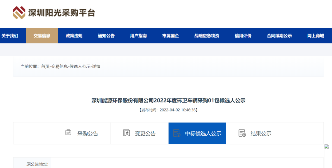 4月2日,深圳陽光采購平臺發(fā)布深圳能源環(huán)保股份有限公司2022年度環(huán)衛(wèi)車輛采購候選人公示,福龍馬和盈峰環(huán)境子公司長沙中聯(lián)環(huán)境預(yù)中標(biāo)該項目兩個標(biāo)包,合計中標(biāo)金額達3.17億元。 ● 深圳能源環(huán)保股份有限公司2022年度環(huán)衛(wèi)車輛采購01包 編號:221GA0209495/01 中標(biāo)候選人:福龍馬集團股份...