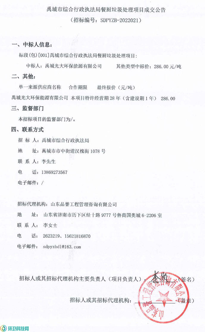 4月3日,中國招標(biāo)投標(biāo)公共服務(wù)平臺發(fā)布山東省禹城市綜合行政執(zhí)法局餐廚垃圾處理項目成交公告,該項目由禹城光大環(huán)保能源有限公司拿下,中標(biāo)單價為286元/噸,特許經(jīng)營期28年(含1年建設(shè)期)。 企查查顯示,禹城光大環(huán)保能源有限公司成立于2019年3月25日,實際控股人為光大環(huán)保能源(山東)控股有限公司,所...