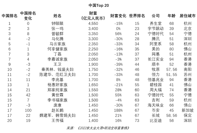 近日,胡潤研究所公布2022年全球富豪榜單。在中國富豪榜中,寧德時代創(chuàng)始人曾毓群成功躋身前三,寧德時代股東黃世霖前進42位,排名15,比亞迪創(chuàng)始人王傳福前進19位,排名20。對此,環(huán)保圈分析稱,今年富豪榜單的變化釋放出一個信號,即碳中和有可能取代IT房地產(chǎn),成為新“造富機器”...