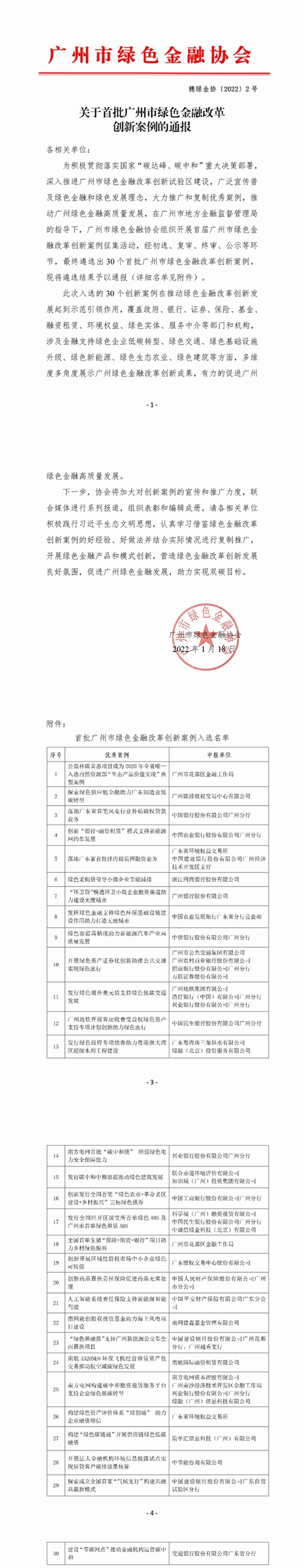 近日,廣州市綠色金融協(xié)會(huì)正式公布首批廣州市綠色金融改革創(chuàng)新案例征集活動(dòng)遴選結(jié)果,最終遴選出30個(gè)首批廣州市綠色金融改革創(chuàng)新案例。 此次入選的30個(gè)創(chuàng)新案例在推動(dòng)綠色金融改革創(chuàng)新發(fā)展起到示范引領(lǐng)作用,覆蓋政府、銀行、證券、保險(xiǎn)、基金、融資租賃、環(huán)境權(quán)益、綠色實(shí)體、服務(wù)中介等部門和機(jī)構(gòu),涉及金融支持綠色...