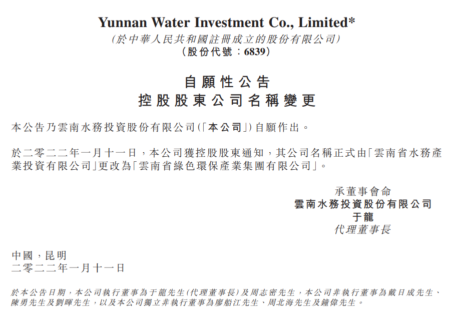 云南省綠色環(huán)保產(chǎn)業(yè)集團(tuán)于2021年12月28日揭牌成立。以云南水務(wù)投資股份有限公司(下稱云南水務(wù))、云南循環(huán)經(jīng)濟(jì)投資有限公司為基礎(chǔ)成立的云南省綠色環(huán)保產(chǎn)業(yè)集團(tuán),在現(xiàn)有資源的基礎(chǔ)上,將進(jìn)一步整合省內(nèi)生態(tài)環(huán)境保護(hù)、污染防治、資源循環(huán)利用等優(yōu)質(zhì)企業(yè)及資源,持續(xù)提升全省環(huán)?;A(chǔ)設(shè)施建設(shè),推進(jìn)全省環(huán)保產(chǎn)業(yè)轉(zhuǎn)型...