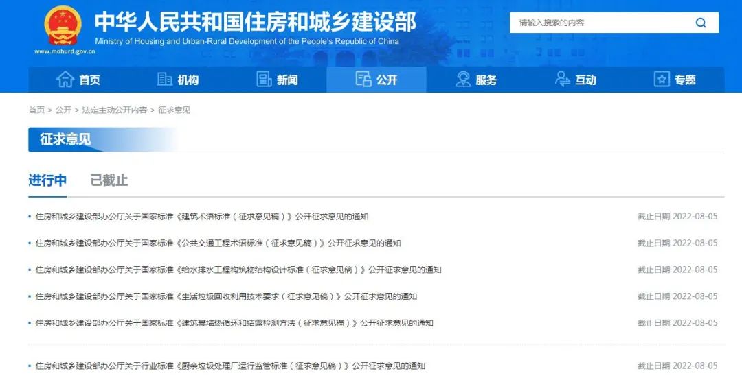 近日,住房和城鄉(xiāng)建設(shè)部辦公廳就國(guó)家標(biāo)準(zhǔn)《建筑術(shù)語(yǔ)標(biāo)準(zhǔn)》《公共交通工程術(shù)語(yǔ)標(biāo)準(zhǔn)》《給水排水工程構(gòu)筑物結(jié)構(gòu)設(shè)計(jì)標(biāo)準(zhǔn)》《生活垃圾回收利用技術(shù)要求》《建筑幕墻熱循環(huán)和結(jié)露檢測(cè)方法》《廚余垃圾處理廠運(yùn)行監(jiān)管標(biāo)準(zhǔn)》公開(kāi)征求意見(jiàn),意見(jiàn)反饋截止時(shí)間為2022年8月5日。點(diǎn)擊下方藍(lán)色標(biāo)題了解標(biāo)準(zhǔn)詳情。《建筑術(shù)語(yǔ)標(biāo)準(zhǔn)》...