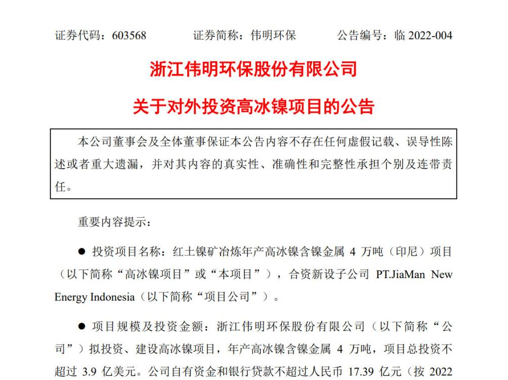 環(huán)保企業(yè)進(jìn)軍新能源領(lǐng)域的越來越多了。1月5日晚間,偉明環(huán)保發(fā)布公告稱進(jìn)軍新能源市場,擬在印尼投建高冰鎳項(xiàng)目。前一天,1月4日,旺能環(huán)境股份有限公司也發(fā)布公告,擬通過收購方式,布局新能源鋰電材料綠色循環(huán)再利用產(chǎn)業(yè)。再往前的2021年12月8日晚間,中國天楹還發(fā)布公告稱,以自有資金或自籌資金方式成立江蘇...