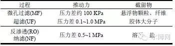 表1 膜分離過程及分離特點(diǎn)