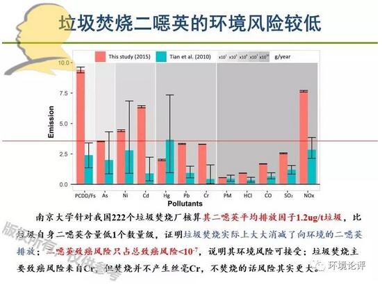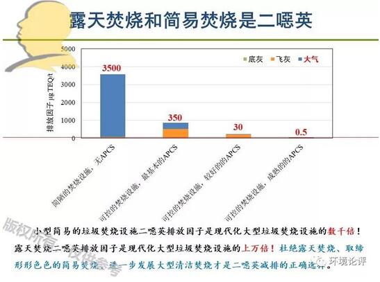 日本、英國(guó)的研究表明,膳食攝入是人體二噁英暴露的主要途徑,占總攝入量的98%以上,呼吸攝入不足1%,因此從二惡英風(fēng)險(xiǎn)控制角度出發(fā),垃圾焚燒廠可建在城市區(qū)域,應(yīng)盡可能遠(yuǎn)離農(nóng)牧水產(chǎn)區(qū)。近期南京大學(xué)的研究表明,垃圾焚燒二噁英致癌風(fēng)險(xiǎn)較可接受水平低1個(gè)數(shù)量級(jí)。由于簡(jiǎn)易焚燒、露天焚燒的二噁英排放因子是現(xiàn)代化垃圾焚燒的數(shù)千倍至上萬倍,我國(guó)在普遍推行垃圾分類制度、完善垃圾分類處理系統(tǒng)過程中,應(yīng)堅(jiān)決杜絕露天焚燒、取締簡(jiǎn)易焚燒,堅(jiān)定不移地發(fā)展現(xiàn)代化大型清潔垃圾焚燒。