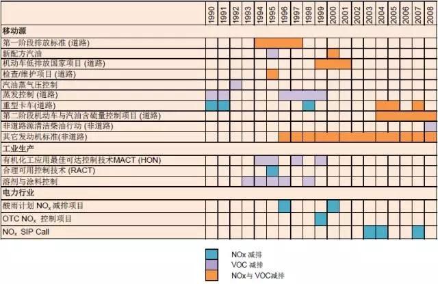 美國臭氧控制措施匯總。來源:EPA,2004