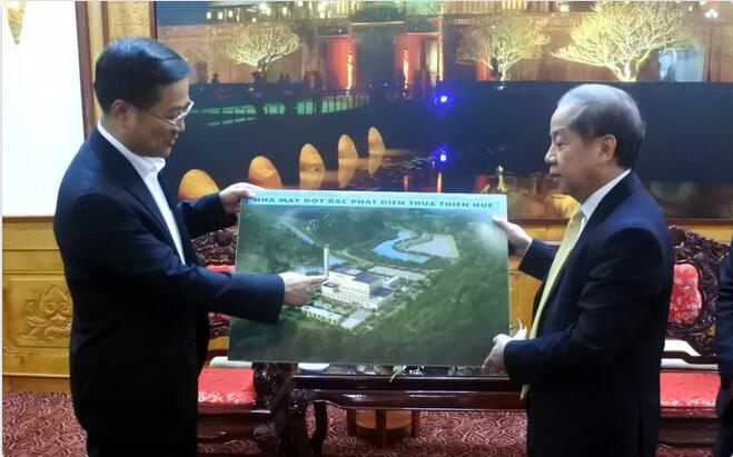 簽約儀式前,王天義總裁與潘玉壽主席就順化項目投資合作進行了坦誠友好的交流。王天義總裁表示,光大國際是亞洲最大的垃圾發(fā)電投資運營商,積累了世界一流的技術(shù)與管理經(jīng)驗,剛投產(chǎn)運營的芹苴項目為光大國際進一步開拓越南市場提供了寶貴的經(jīng)驗,我們對越南投資環(huán)境也充滿信心。我們有信心有能力將順化項目建設(shè)得更快更好,并不斷擴大在越南的投資合作,希望雙方加快合同個別細節(jié)談判,早日開工建設(shè)。潘玉壽主席對此表示完全贊同,并就順化項目提出兩點希望,一是希望光大國際將順化項目建成環(huán)境優(yōu)美、品質(zhì)優(yōu)異的垃圾發(fā)電項目,二是希望雙方鼎力配合,加快項目建設(shè)進程,盡快實現(xiàn)投產(chǎn)運營。簽約儀式后,王天義總裁還向潘玉壽主席展示了順化項目設(shè)計效果圖。