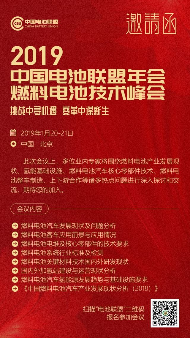 2019年1月20至21日,中國電池企業(yè)聯(lián)盟年會暨全國氫燃料電池汽車產(chǎn)業(yè)技術(shù)峰會將在京召開。本次峰會由中國電池聯(lián)盟、中國電子節(jié)能技術(shù)協(xié)會電池專委會、中國高科技產(chǎn)業(yè)研究會、清華大學(xué)、北京理工大學(xué)聯(lián)合舉辦。