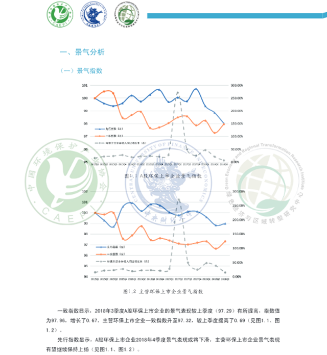 A股環(huán)保上市企業(yè)和主營環(huán)保上市企業(yè)2018年3季度景氣指數(shù)雙雙回暖。預計A股環(huán)保上市企業(yè)2018年4季度景氣表現(xiàn)或?qū)⒂兴禄?,主營環(huán)保上市企業(yè)4季度景氣表現(xiàn)有望繼續(xù)保持上揚。