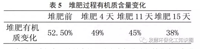 堆肥過程中有機質(zhì)變化見表5。