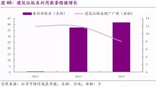 早在2000年初,公司便積極發(fā)展建筑垃圾的回收工作。公司在2009年至2014年間,通過10余家建筑垃圾回收廠占據(jù)了穩(wěn)定市場(chǎng)份額,建筑行業(yè)的季節(jié)性高峰特性也為公司在夏季的營(yíng)業(yè)收入做出了可觀貢獻(xiàn)。而在2011年,公司又創(chuàng)新式的推出了“分散回收跟蹤工具”,通過跟蹤使用在工程中的重復(fù)利用建筑材料,幫助工程項(xiàng)目方更好地完成綠色建筑的目標(biāo)。截止2015年,通過跟蹤工具的幫助,已有多達(dá) 41萬(wàn)噸的建筑垃圾得到回收或再利用,比2013年的37萬(wàn)噸增長(zhǎng)10%。