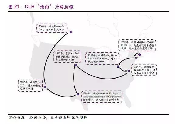 CLH通過這次并購(gòu)一舉成為美國(guó)最大的危廢處置公司,奠定了危廢行業(yè)新的競(jìng)爭(zhēng)格局。在這次行業(yè)洗牌中,傳統(tǒng)巨頭企業(yè)受到的沖擊較大,由于體量較大較難通過適時(shí)的調(diào)整及時(shí)止損,而受沖擊較小的中小企業(yè)反而通過合理并購(gòu)成為新巨頭,如CLH。