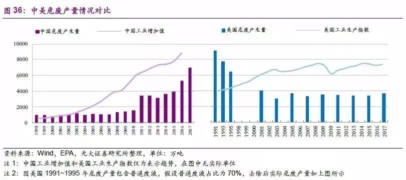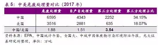 國(guó)內(nèi)危廢處理可比空間約是美國(guó)的3-4 倍。