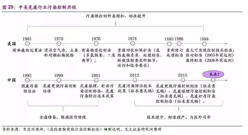 在中國(guó)對(duì)危廢污染進(jìn)行控制的時(shí)期,美國(guó)相關(guān)產(chǎn)業(yè)已發(fā)展成熟。因此,中國(guó)在短短幾年內(nèi)先后推出危廢焚燒、填埋、貯存污染控制標(biāo)準(zhǔn),同時(shí)對(duì)危廢名錄和跨省轉(zhuǎn)移審批制度進(jìn)行借鑒,建立起整套相對(duì)成熟的技術(shù)和標(biāo)準(zhǔn)體系。
