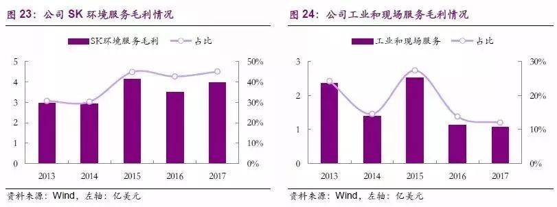 SK環(huán)境及性能產(chǎn)品服務(wù)的重要性在逐步提升。公司在2012年收購(gòu)Safety-Kleen 后,SK 環(huán)境及性能產(chǎn)品服務(wù)成為了繼傳統(tǒng)危廢技術(shù)服務(wù)之外的第二大業(yè)務(wù),雖然業(yè)務(wù)收入絕對(duì)額變化不大,但業(yè)務(wù)收入占比逐年上升,且該項(xiàng)業(yè)務(wù)為公司帶來了可觀的毛利,甚至超過了傳統(tǒng)的危廢處置業(yè)務(wù),2017年該項(xiàng)業(yè)務(wù)毛利占比達(dá)45.12%,是公司業(yè)績(jī)的重要支撐。2016年,公司為了更好地提供一站式服務(wù),以2.048億美元戰(zhàn)略性收購(gòu)與石油產(chǎn)品銷售相關(guān)的7家公司業(yè)務(wù),使廢油業(yè)務(wù)形成供-產(chǎn)-銷一體化的經(jīng)營(yíng)模式。廢油一旦收集完畢,就會(huì)被送到煉油廠進(jìn)行處理,清除掉所有的污染物和雜質(zhì),再作為公司的產(chǎn)品返回市場(chǎng)。廢油業(yè)務(wù)的全產(chǎn)業(yè)鏈覆蓋將進(jìn)一步最大化廢油業(yè)務(wù)的利益獲取。