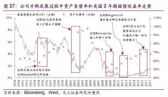(1)內(nèi)因:發(fā)展戰(zhàn)略清晰,并購(gòu)時(shí)機(jī)得當(dāng)。從早期的“橫向”并購(gòu)穩(wěn)步擴(kuò)大公司規(guī)模,到危廢行業(yè)轉(zhuǎn)型期抓住機(jī)會(huì)并購(gòu)SK 一舉做大公司體量,再到危廢成熟期的跨行業(yè)并購(gòu)多元化發(fā)展穩(wěn)固公司危廢處理龍頭地位,公司在不同階段的發(fā)展戰(zhàn)略十分清晰;同時(shí)公司的幾個(gè)重要并購(gòu)均處在融資成本相對(duì)合理的時(shí)期,資產(chǎn)負(fù)債率雖然在并購(gòu)發(fā)生時(shí)有所提升,但后續(xù)的管控使得資產(chǎn)負(fù)債率一直處于相對(duì)平穩(wěn)水平。