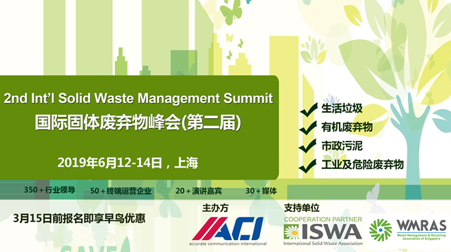 為配合國家固廢管理工作,幫助國內(nèi)相關企業(yè)抓住中國固廢處理領域在“新常態(tài)”中的發(fā)展機遇,推動固廢處理、運營管理技術的創(chuàng)新與發(fā)展,促進國內(nèi)外先進企業(yè)在固廢處理技術、運營管理模式、設備創(chuàng)新方面的交流, 2019國際固體廢棄物峰會(第二屆)將于2019年6月12-14日在上海召開。