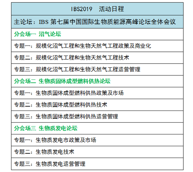 IBS2019將在兩天的會議中,開展生物質(zhì)沼氣論壇、生物質(zhì)發(fā)電、生物質(zhì)固體成型燃料和供熱三大專場。從“沼氣工程和生物天然氣工程政策及商業(yè)化(及沼氣設(shè)備),沼氣工程和生物天然氣工程技術(shù)及工程運營管理”到“生物質(zhì)原料收儲運技術(shù)與裝備、生物質(zhì)發(fā)電市政策及市場、燃煤生物質(zhì)耦合發(fā)電技術(shù)及發(fā)展、生物質(zhì)直燃發(fā)電技術(shù)及設(shè)備應(yīng)用、生物質(zhì)發(fā)電運營管理、生物質(zhì)電廠的電氣及過程自動化控技術(shù)與裝備”再到“生物質(zhì)固體成型燃料供熱政策及市場,生供熱技術(shù)與供熱運營管理”,精心設(shè)置議題,搭建學(xué)術(shù)企業(yè)共同交流合作的橋梁。