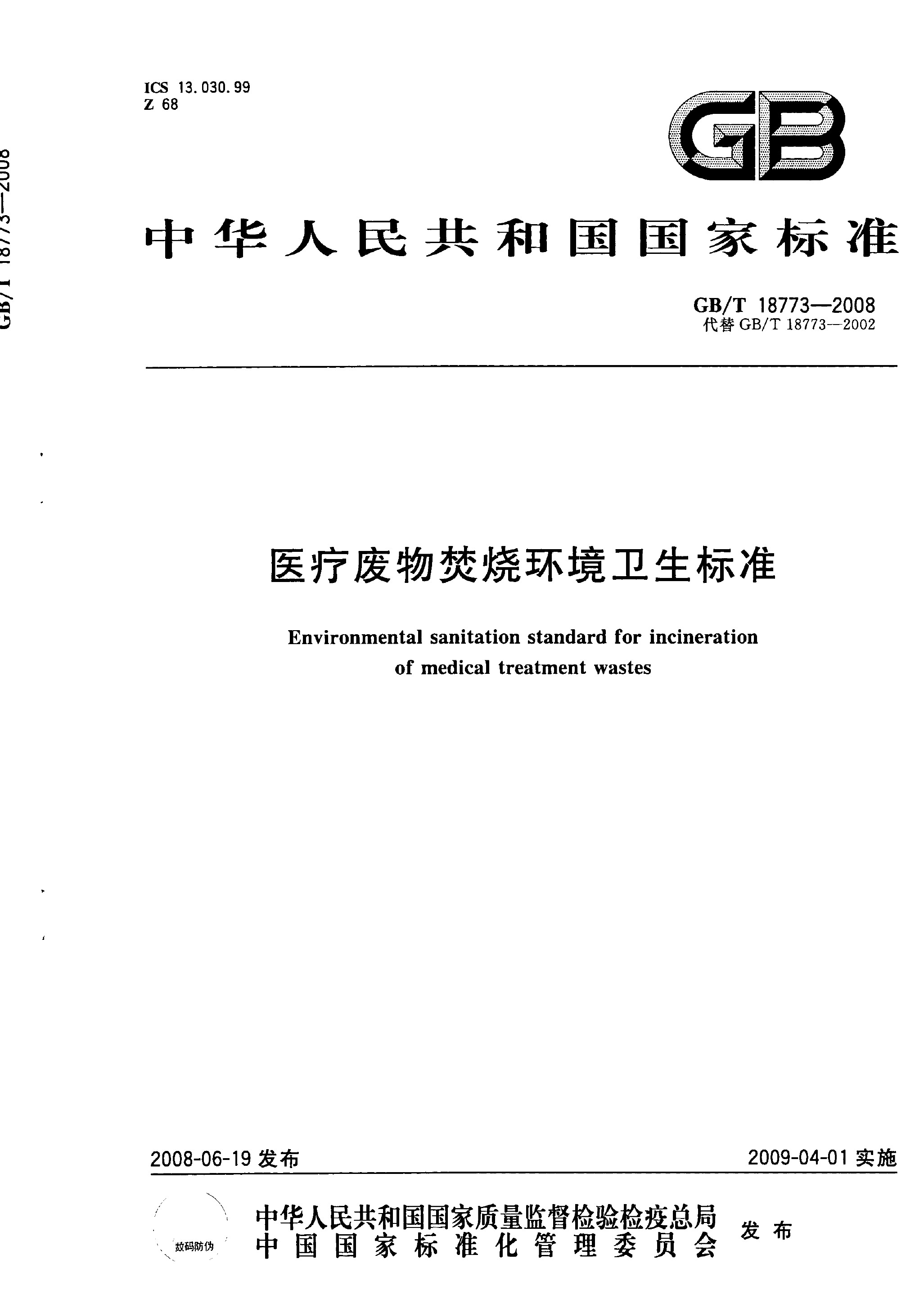 醫(yī)療廢物焚燒環(huán)境衛(wèi)生標(biāo)準(zhǔn)(GB/T 18773-2008)
