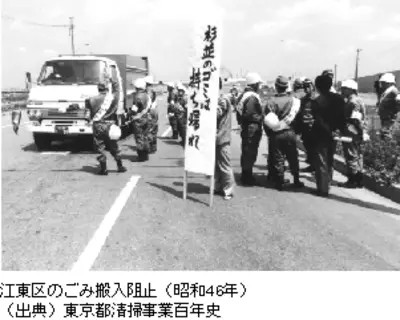 另一方面,江東區(qū)政府和區(qū)民也慢慢意識(shí)到,都政府關(guān)于垃圾填埋到1970年為止的承諾,根本沒有實(shí)現(xiàn)的可能性。到了1971年,平均每天有5000輛以上的搬運(yùn)車,將東京中心23區(qū)所生產(chǎn)的垃圾中的70%搬運(yùn)到江東區(qū)進(jìn)行填埋。由此產(chǎn)生的交通堵塞、蚊蟲叢生、空氣污染甚至是火災(zāi),給江東區(qū)區(qū)民的日常生活造成重大困擾。