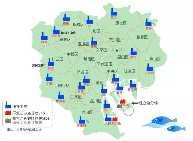 現(xiàn)在東京中心23區(qū)垃圾處理場分布