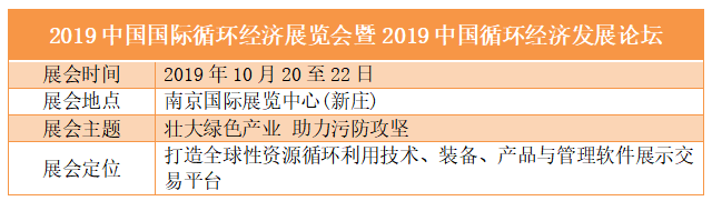 為全面貫徹黨中央、國務(wù)院關(guān)于建設(shè)生態(tài)文明和推進循環(huán)發(fā)展的決策部署,加快發(fā)展并壯大資源循環(huán)利用產(chǎn)業(yè),推動技術(shù)創(chuàng)新,促進科技成果轉(zhuǎn)化,推廣先進技術(shù)、裝備與產(chǎn)品,加強國內(nèi)外循環(huán)經(jīng)濟領(lǐng)域的合作與交流,中國循環(huán)經(jīng)濟協(xié)會將于2019年10月20日至22日在南京國際展覽中心召開2019中國國際循環(huán)經(jīng)濟展覽會暨2019中國循環(huán)經(jīng)濟發(fā)展論壇。展會以“壯大綠色產(chǎn)業(yè) 助力污防攻堅”為主題,展會規(guī)模達15000平方米,致力于打造全球性資源循環(huán)利用技術(shù)、裝備、產(chǎn)品與管理軟件展示交易平臺。