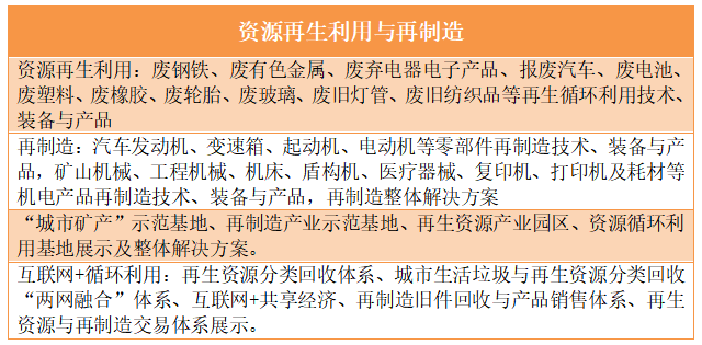 展會內(nèi)容包括工業(yè)循環(huán)經(jīng)濟、資源再生利用與再制造、城鄉(xiāng)低值廢棄物資源化利用、節(jié)能低碳與可再生能源、農(nóng)林廢棄物綜合利用、危險廢物無害化處置和資源化利用技術(shù)與裝備、節(jié)水與水循環(huán)利用、共享經(jīng)濟與綠色消費、循環(huán)經(jīng)濟文化及其它符合“減量化、再利用、可循環(huán)”循環(huán)經(jīng)濟原則的模式、產(chǎn)品、創(chuàng)意、循環(huán)經(jīng)濟與節(jié)能減排管理軟件系統(tǒng)等九大方面。