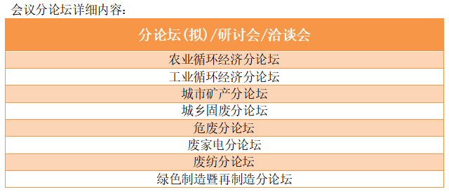 此外展會同期還將舉辦2019中國循環(huán)經(jīng)濟發(fā)展論壇(主論壇)、中國循環(huán)經(jīng)濟協(xié)會第二屆二次理事會、其它分論壇(擬)/研討會/洽談會等多個方面的論壇會議,
