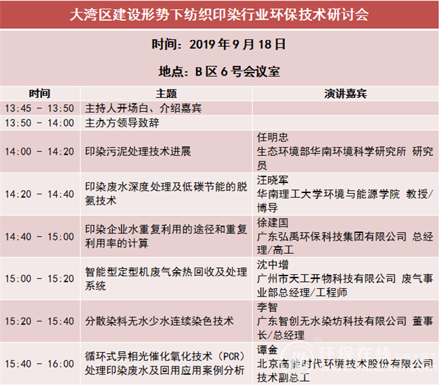 除此之外,還包括2019年清潔生產(chǎn)與環(huán)境管理研討會、廣東省環(huán)境保護產(chǎn)業(yè)協(xié)會第五屆理事會第九次會議、科威納華南環(huán)保產(chǎn)業(yè)技術峰會、廣東省生態(tài)環(huán)境廳“送技術服務進企業(yè)”玻璃行業(yè)專題宣講會、一刻講臺IETalks、大灣區(qū)建設形勢下紡織印染行業(yè)環(huán)保技術研討會和2019第七屆華南環(huán)境產(chǎn)業(yè)發(fā)展論壇7場論壇。