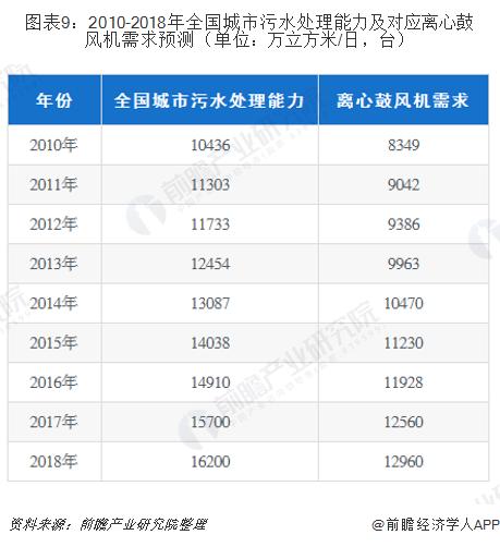 根據(jù)歷年數(shù)據(jù)和規(guī)劃進(jìn)行測算,2018年城市污水處理廠數(shù)量會(huì)略有提升,達(dá)到2300個(gè)左右,污水廠日處理能力達(dá)到1.62億立方米/日,按照日處理能力50000噸配比4臺(tái)高壓離心鼓風(fēng)機(jī)的比例,2018年我國城市污水處理所需高壓離心鼓風(fēng)機(jī)數(shù)量為12960臺(tái)。