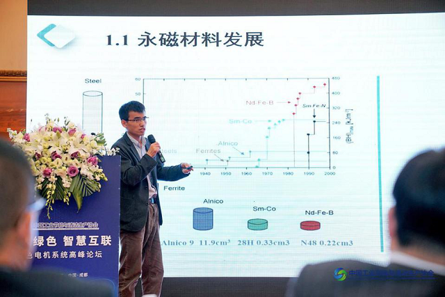 杭州永磁集團總裁冒守棟以《永磁材料生產技術發(fā)展與應用簡介》為題發(fā)表主題演講。