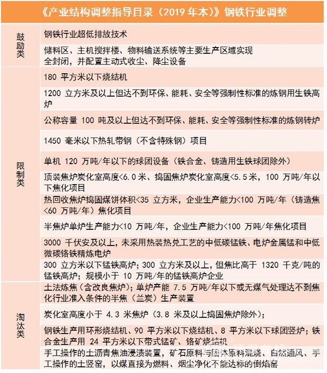 根據(jù)我國大氣污染的實際情況,《目錄》對煤炭燃燒和鋼鐵兩個行業(yè)的調(diào)整力度也相對較大。鋼鐵超低排放方面,迎合國家政策,鼓勵新技術(shù)的開發(fā)與應(yīng)用,要求生產(chǎn)過程中實現(xiàn)全封閉,采用除塵等設(shè)備,鼓勵使用更清潔的生產(chǎn)工具,淘汰或關(guān)停高度低、污染中的焦爐等;