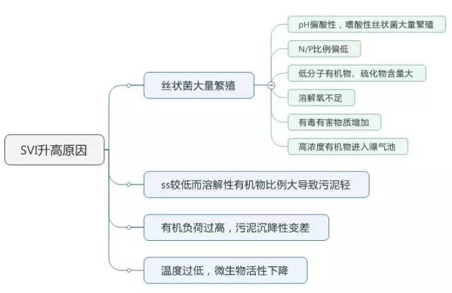 SVI值與污泥負(fù)荷有關(guān),污泥負(fù)荷過高或過低,活性污泥的代謝性能都會變差,SVI值也會變很高,存在出現(xiàn)污泥膨脹的可能。