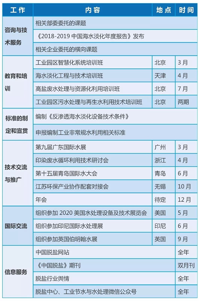 2020年度脫鹽分會(huì)主要活動(dòng)計(jì)劃