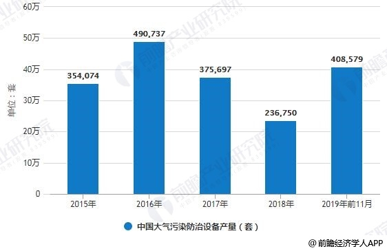 2015-2019年前11月中國大氣污染防治設備產(chǎn)量統(tǒng)計情況