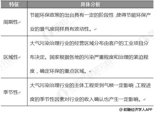 大氣污染治理行業(yè)特征分析情況