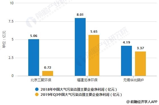 2018-2019年Q3中國大氣污染治理主要企業(yè)凈利潤統(tǒng)計情況