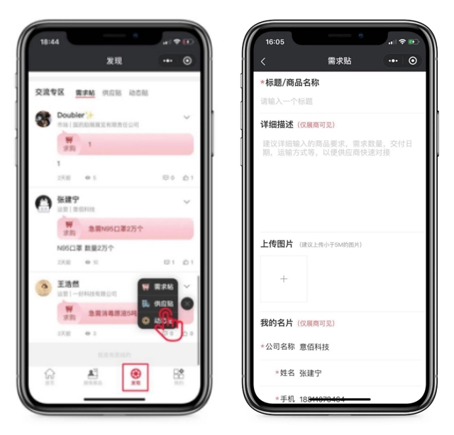 02點(diǎn)擊“發(fā)現(xiàn)”—發(fā)帖,選擇發(fā)帖類(lèi)型,發(fā)布供需信息