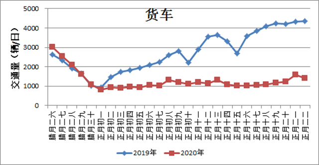 2019、2020年春節(jié)期間斷面交通量變化趨勢(shì)(數(shù)據(jù)來(lái)源:交通運(yùn)輸部規(guī)劃院)