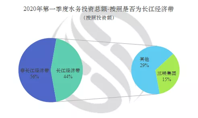 在第一季度700億水務(wù)市場中,44%的市場份額分布在長江經(jīng)濟(jì)帶,占比近半;長江經(jīng)濟(jì)帶又有15%市場份額被三峽集團(tuán)拿走,自從三峽集團(tuán)開始涉足環(huán)保,其業(yè)務(wù)便快速向長江經(jīng)濟(jì)帶沿江城市鋪開,集團(tuán)先后在安徽、江西、湖南、湖北多市縣以及重慶拿下水務(wù)PPP項目大單。