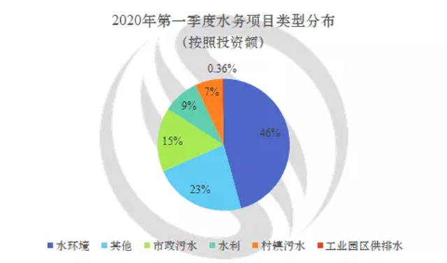 一季度水務(wù)市場整體概況:市政污水項目數(shù)量最多,占比整個水務(wù)市場超三成;水環(huán)境項目投資額占比最大,占比整個水務(wù)市場的近一半。(3)