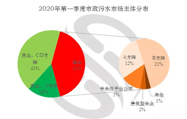 一季度水務(wù)市場主體:水環(huán)境市場以建筑型央企為主;市政污水市場國企/民企四六開。