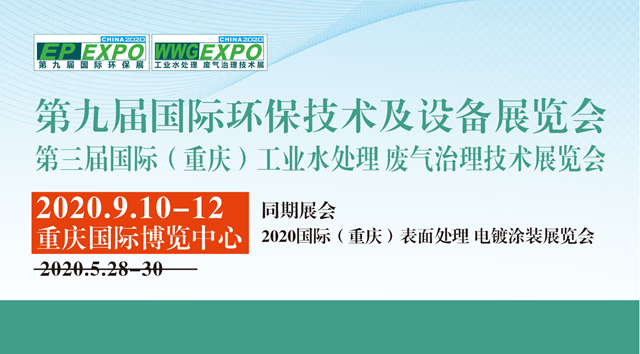 將原定于2020年5月28-30日在重慶國際博覽中心舉辦的“第九屆國際環(huán)保技術(shù)及設(shè)備展覽會”暨“第三屆國際(重慶)工業(yè)水處理 廢氣治理技術(shù)展覽會,”(以下簡稱EP EXPO)延期至9月10-12日舉辦,地點不變。