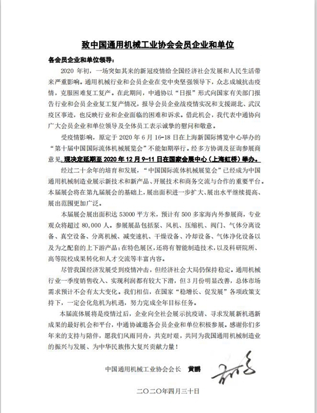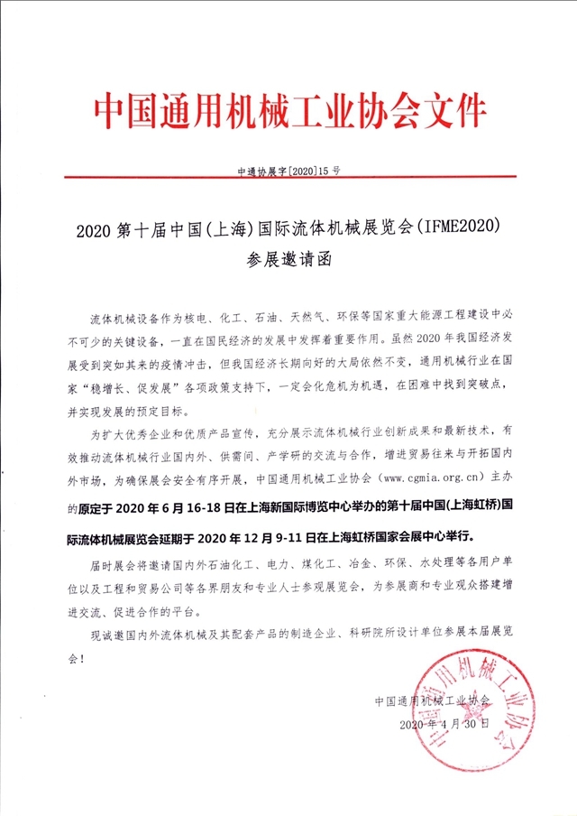 一場突如其來的疫情打亂了整個行業(yè)的節(jié)奏,作為年度流體機械行業(yè)國際性盛會,為確保海內(nèi)外展商的參展效果,保障廣大展商和觀眾的安全和健康,第十屆中國(上海)國際流體機械展覽會(IFME)主辦方中國通用機械工業(yè)協(xié)會(以下簡稱:“中通協(xié)”)決定IFME2020延期舉辦。經(jīng)過多方積極地協(xié)調(diào)與溝通,中通協(xié)宣布IFME2020遷移至全球一大會展綜合體——國家會展中心(上海), 于12月9-11日舉辦。移師新館的IFME2020戰(zhàn)略布局全面升級,輻射全中國,將再次引領(lǐng)流體機械行業(yè)轉(zhuǎn)型升級,實現(xiàn)跨越式發(fā)展。